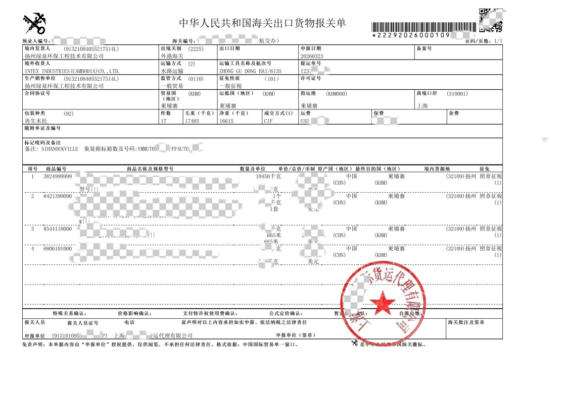 انظر التفاصيل[بنوم بنه، كمبوديا، 22 مارس 2026] — أكملت شركة Lvquan Environmental Protection Engineering Technology Co., Ltd. مؤخرًا بنجاح عملية تسليم كبيرة عبر الحدود، حيث قامت بتزويد مجموعة من معدات معالجة غاز عادم الطباعة المتقدمة لعميلها الكمبودي، INTEX INDUSTRIES (CAMBODIA) CO., LTD.